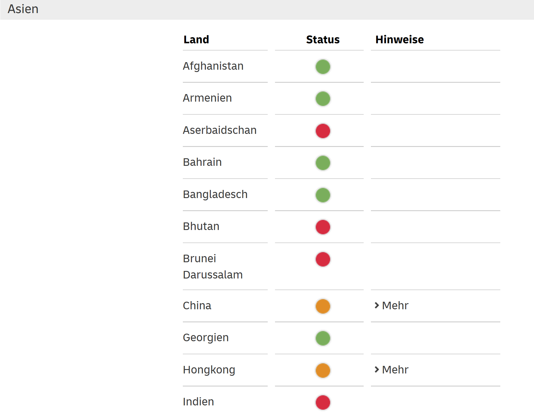 Die Deutsche Post hat dabei aktuell die Übersicht deutlich verbesert und ein Ampelstystem eingeführt, um anzuzeigen, ob ein Versand in das entsprechende Land nach wie vor möglich (grün), eingeschränkt (orange) oder nicht möglich (rot) ist.